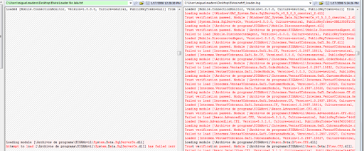 Vemos que después de cargar el Modulo ConnectionMonitor, trata de cargar el de SqlServerCE 3.5 en el log de la agenda que si funciona, sin embargo, la secuencia es muy distinta en las otras y trata de cargar aún la versión anterior del SqlCE.